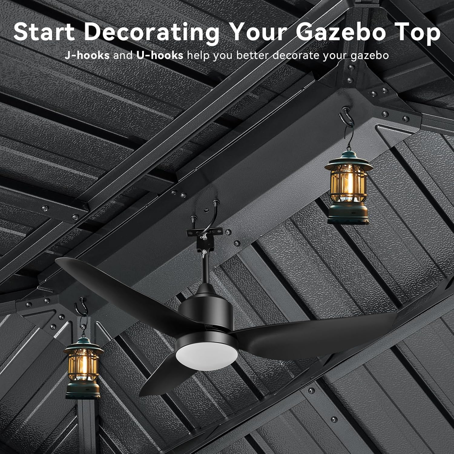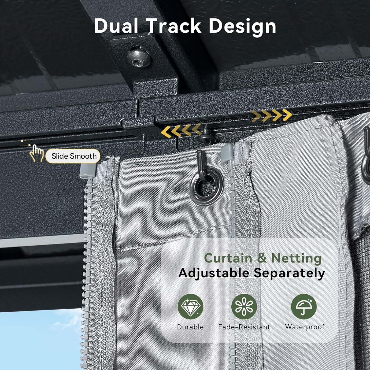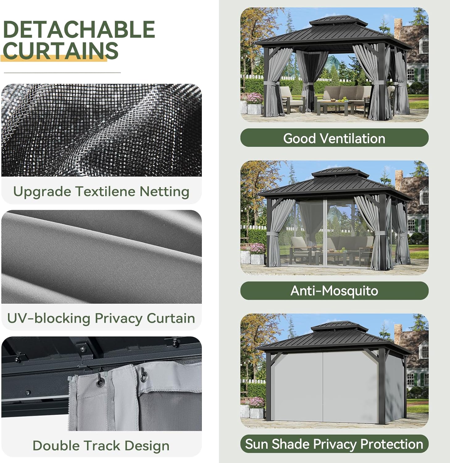 Aoxun 12'x10' Hardtop Gazebo, Aluminum Frame Permanent Pavilion with Curtains and Netting, Outdoor Galvanized Double Roof Canopy, Designed for Garden, Lawns, Patio (Black/Grey)